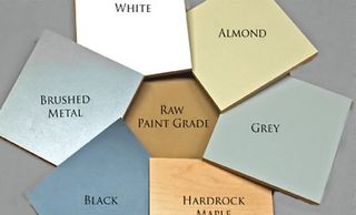 Melamine finished panels are the most economical way to display your product and are stocked in the following colors: White, Black, Almond, Gray, Hardrock Maple Wood Grain, and Brushed Stainless. Other mill melamine colors are available upon request.